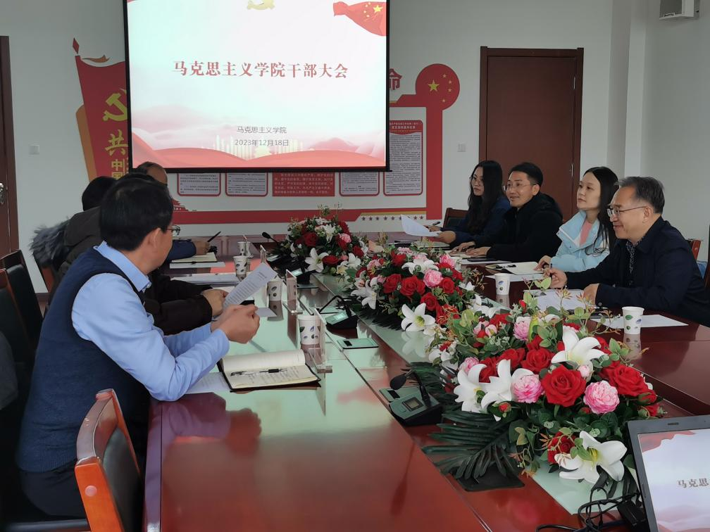 12月18日上午,学院召开干部大会,宣布校党委决定,曾明荣同志任马克思主义学院党总支书记。校党委书记王光亚出席并讲话。会议由学院党总支副书记、院长张梦涛主持,组织部常务副部长唐莉,学校机关党委书记、原马克思主义学院党总支书记慕宇,马克思主义学院副院长解慧娟,及学院教职工代表参加了会议。