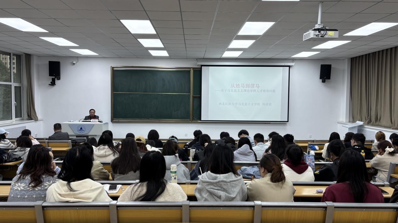 10月14日下午,学院邀请西北民族大学马克思主义学院院长、博士生导师杨建毅教授,在段家滩校区博源楼301作《从姓马到信马——关于马克思主义理论学科人才培养问题》学术讲座。讲座由学院副院长陈张林主持,全体硕士研究生参加。