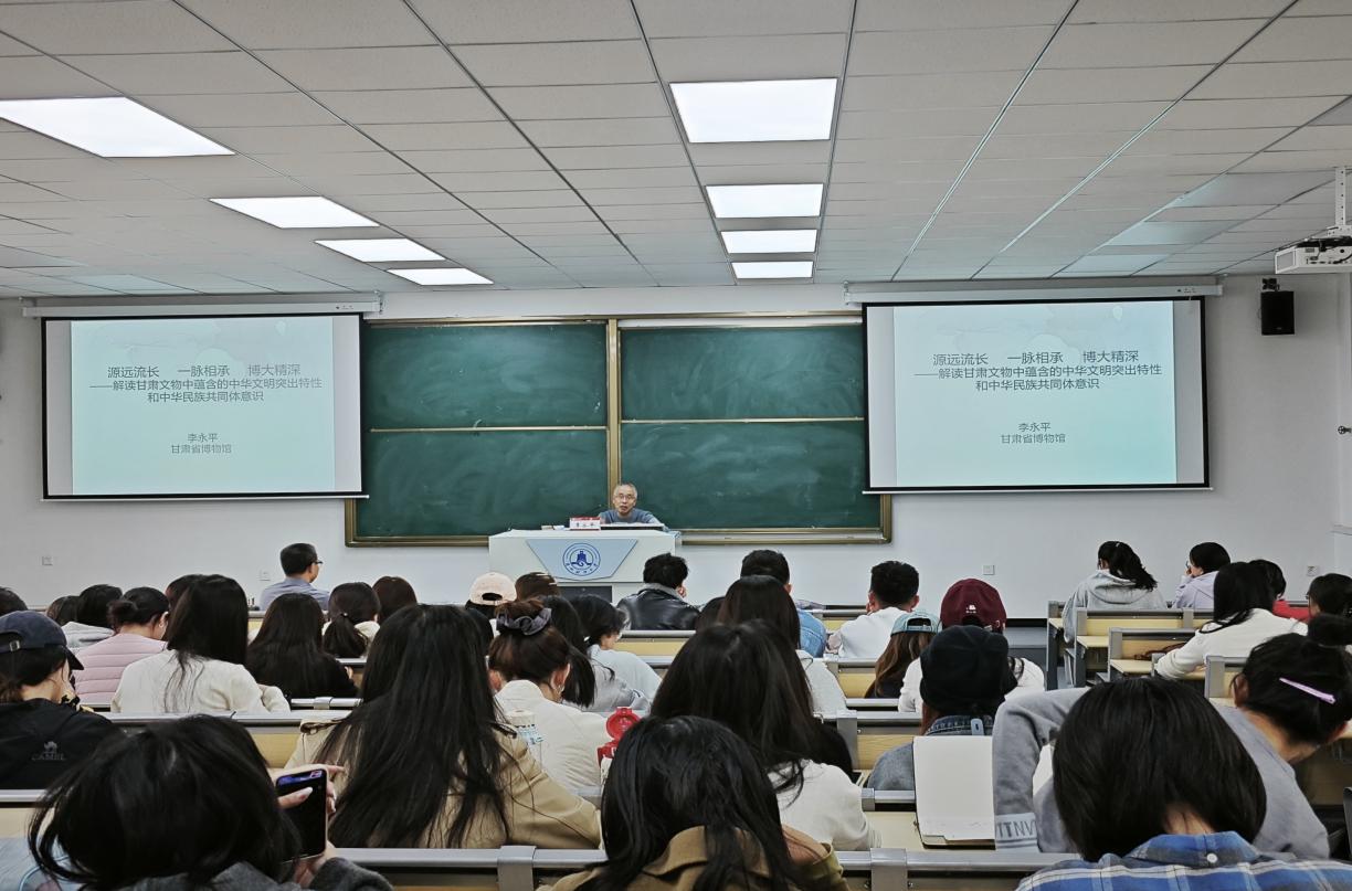 2025年11月4日下午,我院邀请甘肃省博物馆研究员李永平在段家滩校区博源楼401作题为《甘肃文物中蕴含的中华文明突出特性和中华民族共同体意识》的学术讲座。此次讲座由副院长陈张林主持,全体硕士研究生参加。
