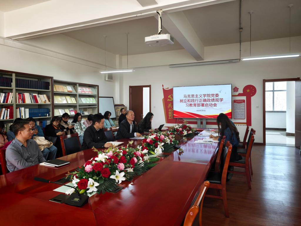 2026年3月9日上午,学院党委书记曾明荣主持召开树立和践行正确政绩观学习教育工作部署会。学院班子成员李长兵、陈张林、解慧娟及全体教师参加会议。