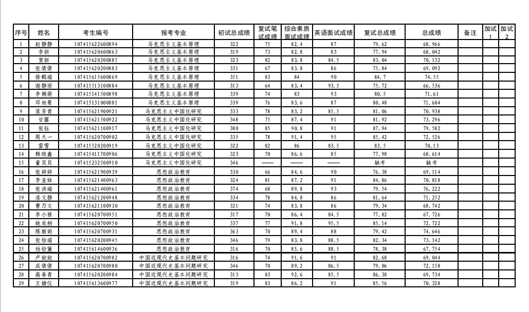 兰州财经大学马克思主义学院2025年全国硕士研究生一志愿复试成绩公示